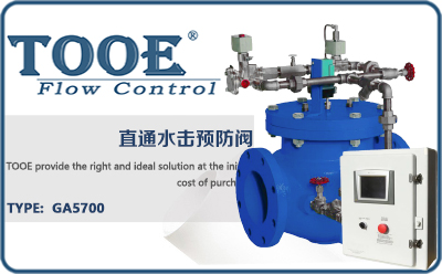 水擊預(yù)防閥(含電子控制箱),主閥與泄放閥是一樣的。水擊預(yù)防閥由主閥、高壓水力導(dǎo)閥、電磁導(dǎo)閥、低壓壓力開關(guān)、導(dǎo)管、電子控制箱等零部件組成。具有水力自動控制、電子自動控制、高壓無條件開啟泄水、低壓提前開啟、斷電開啟、斷電并伴隨低壓開啟泄除水錘及預(yù)防水錘的功能。主閥門能快開緩閉,具有防止自身關(guān)閥水錘的功能。水擊預(yù)防閥用于水泵出口主輸水管道上,靠近水擊發(fā)生源如止回閥等,能提前開啟預(yù)防水錘并無條件泄除高壓水錘,是泵站安全的重要預(yù)防及保護設(shè)備,能有效地提高系統(tǒng)安全可靠性。